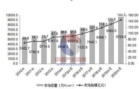 2010-2020年中國無功補償市場規模預測(單位:kvar)